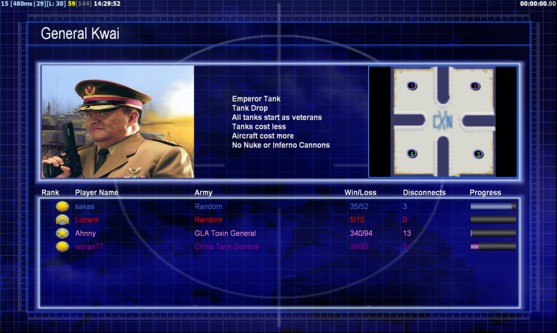 | Namelebran77 | Side | Color | Team1 | Starting Position2 | Buildings Built8 | Buildings Lost0 | Buildings Destroyed1 | Units Built12 | Units Lost0 | Units Destroyed1 | Money Earned4800 | OutcomeWon |