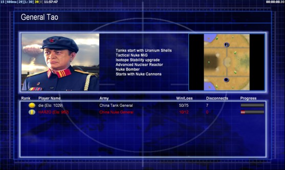 | Name | Side | Color | Team | Starting Position | Buildings Built | Buildings Lost | Buildings Destroyed | Units Built | Units Lost | Units Destroyed | Money Earned | Outcome |