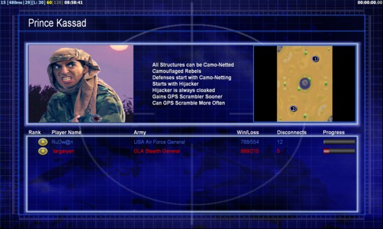 | Name | Side | Color | Team | Starting Position | Buildings Built | Buildings Lost | Buildings Destroyed | Units Built | Units Lost | Units Destroyed | Money Earned | Outcome |
