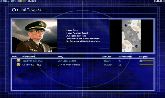 | Name | Side | Color | Team | Starting Position | Buildings Built | Buildings Lost | Buildings Destroyed | Units Built | Units Lost | Units Destroyed | Money Earned | Outcome |