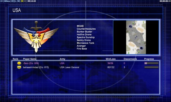 | Name | Side | Color | Team | Starting Position | Buildings Built | Buildings Lost | Buildings Destroyed | Units Built | Units Lost | Units Destroyed | Money Earned | Outcome |