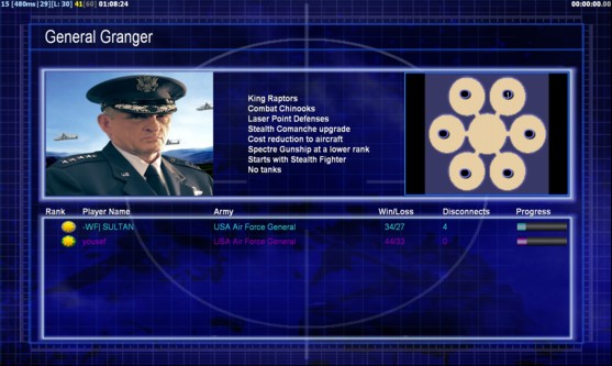 | Name | Side | Color | Team | Starting Position | Buildings Built | Buildings Lost | Buildings Destroyed | Units Built | Units Lost | Units Destroyed | Money Earned | Outcome |