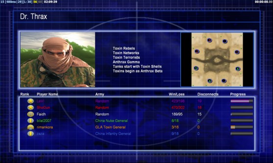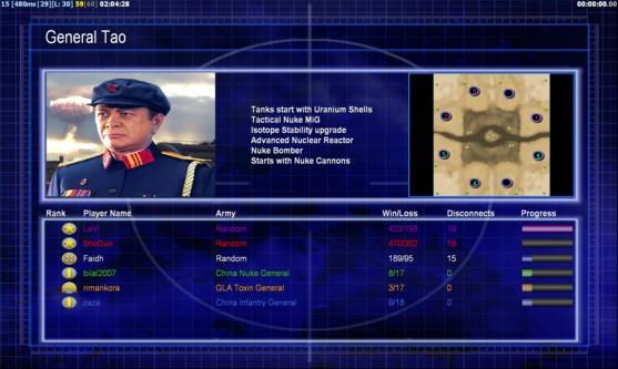 | Namezaza | Side | Color | Team1 | Starting Position4 | Buildings Built14 | Buildings Lost0 | Buildings Destroyed0 | Units Built43 | Units Lost0 | Units Destroyed0 | Money Earned6600 | OutcomeLost |