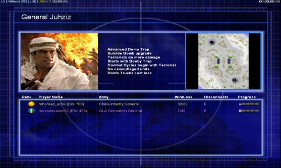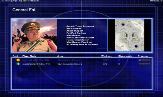 | Name | Side | Color | Team | Starting Position | Buildings Built | Buildings Lost | Buildings Destroyed | Units Built | Units Lost | Units Destroyed | Money Earned | Outcome |