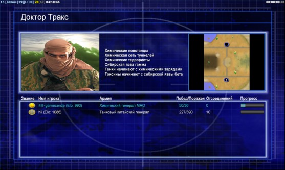 | Name | Side | Color | Team | Starting Position | Buildings Built | Buildings Lost | Buildings Destroyed | Units Built | Units Lost | Units Destroyed | Money Earned | Outcome |