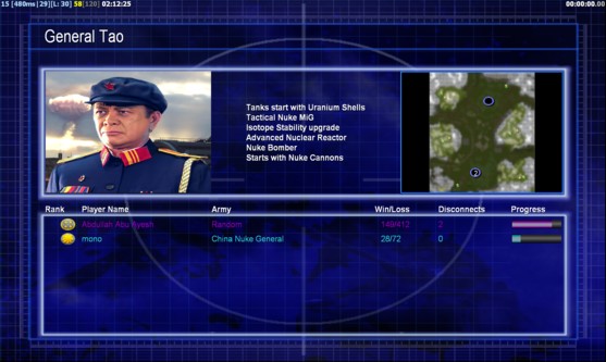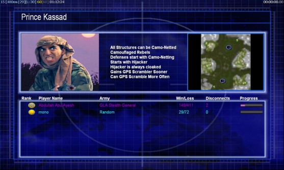 | NameAbdullah Abu Ayesh | Side | Color | TeamNone | Starting PositionNone | Buildings Built14 | Buildings Lost0 | Buildings Destroyed0 | Units Built51 | Units Lost0 | Units Destroyed4 | Money Earned25875 | OutcomeLost |