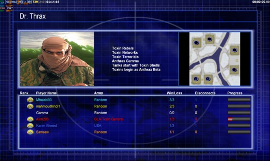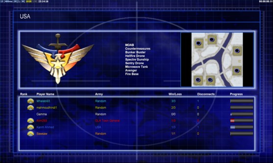 | NameMhalabi93 | Side | Color | Team0 | Starting PositionNone | Buildings Built1 | Buildings Lost0 | Buildings Destroyed0 | Units Built1 | Units Lost0 | Units Destroyed0 | Money Earned0 | OutcomeWon |