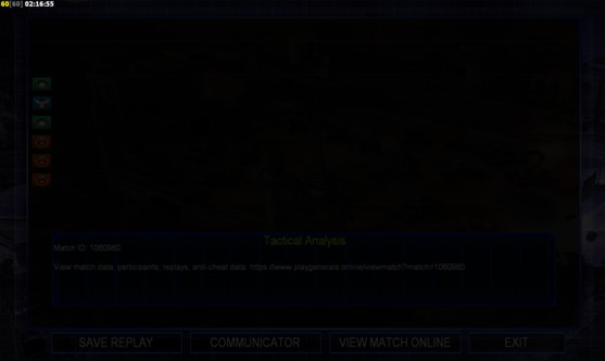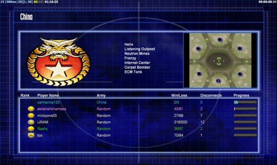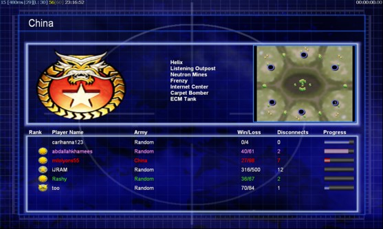 | Namecarlhanna123 | Side | Color | TeamNone | Starting PositionNone | Buildings Built1 | Buildings Lost0 | Buildings Destroyed0 | Units Built1 | Units Lost0 | Units Destroyed0 | Money Earned0 | OutcomeLost |