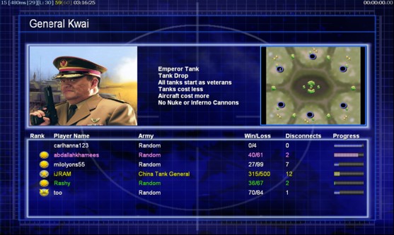 | NameRashy | Side | Color | TeamNone | Starting PositionNone | Buildings Built1 | Buildings Lost0 | Buildings Destroyed0 | Units Built2 | Units Lost0 | Units Destroyed0 | Money Earned0 | OutcomeLost |