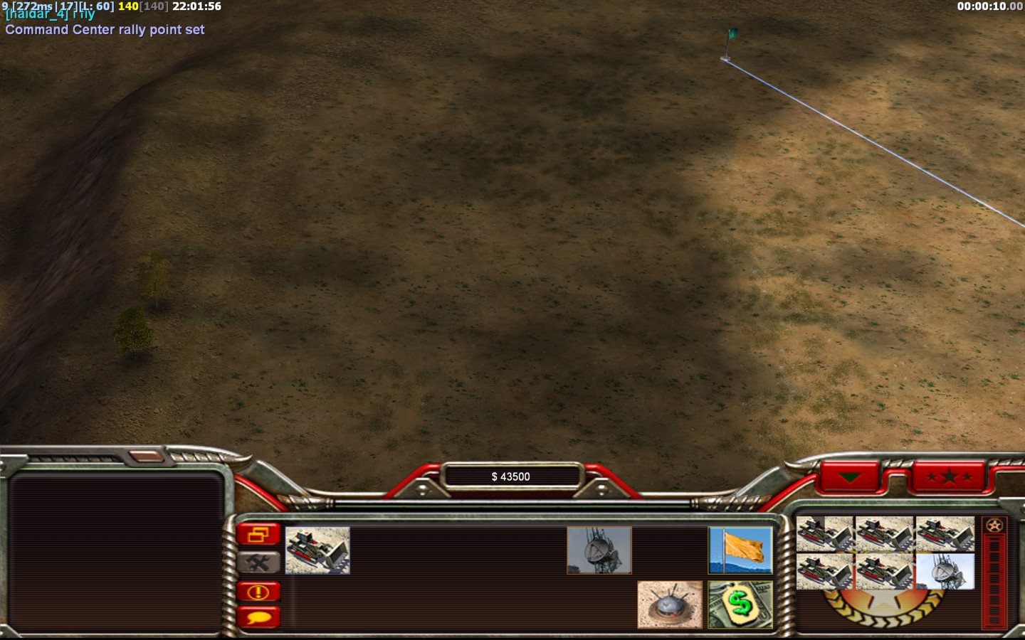 | Namehumamissa97 | Side | Color | Team0 | Starting Position6 | Buildings Built3 | Buildings Lost0 | Buildings Destroyed0 | Units Built7 | Units Lost0 | Units Destroyed0 | Money Earned0 | OutcomeLost |