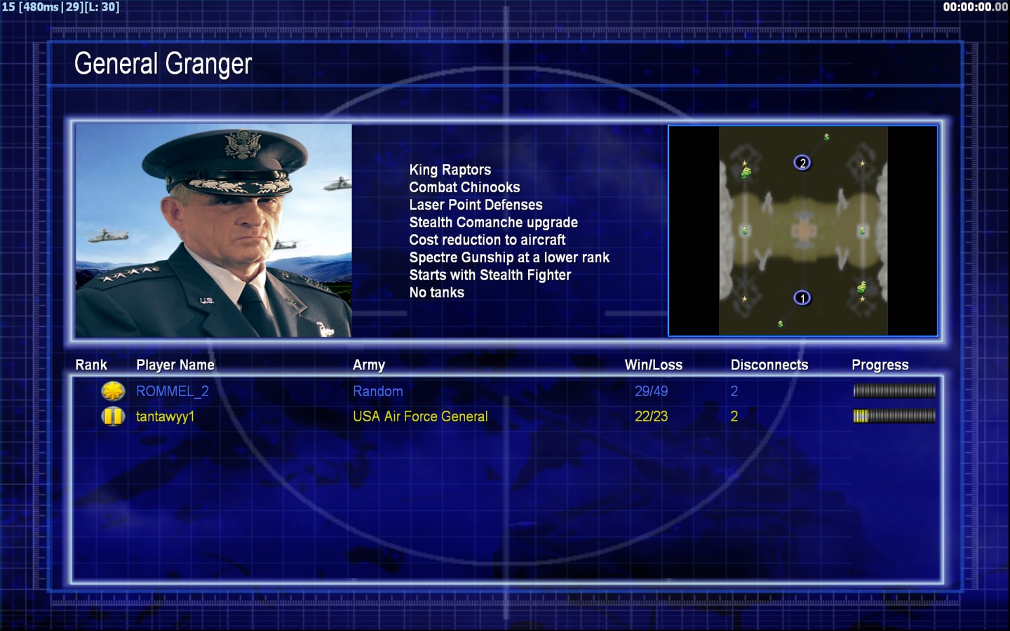 | Nametantawyy1 | Side | Color | TeamNone | Starting Position1 | Buildings Built8 | Buildings Lost0 | Buildings Destroyed0 | Units Built28 | Units Lost5 | Units Destroyed9 | Money Earned27800 | OutcomeWon |