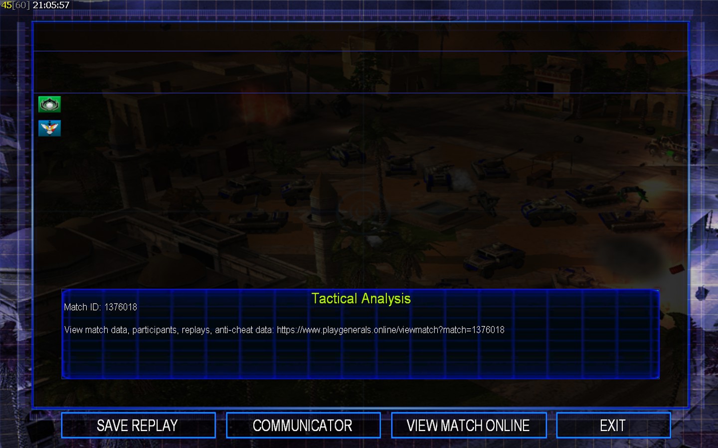 | Name | Side | Color | Team | Starting Position | Buildings Built | Buildings Lost | Buildings Destroyed | Units Built | Units Lost | Units Destroyed | Money Earned | Outcome |