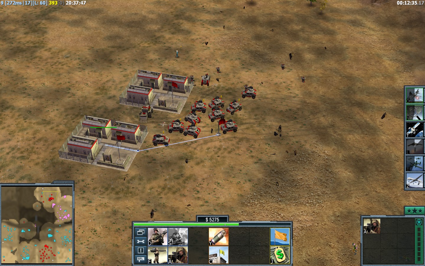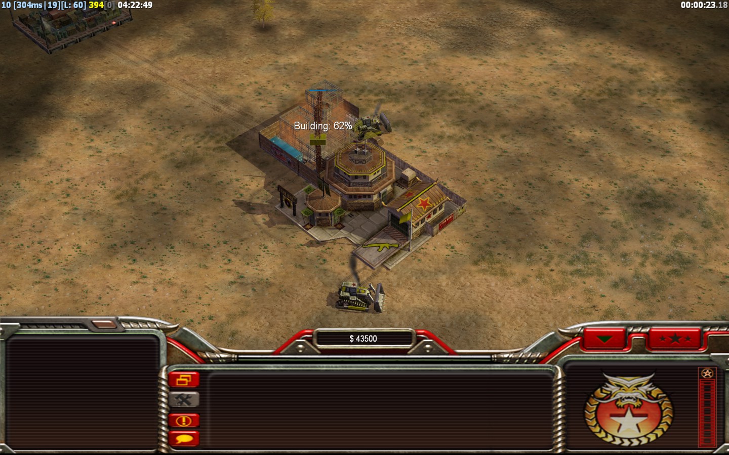 | NameJAFER© | Side | Color | Team0 | Starting Position4 | Buildings Built22 | Buildings Lost0 | Buildings Destroyed12 | Units Built138 | Units Lost72 | Units Destroyed172 | Money Earned99320 | OutcomeWon |