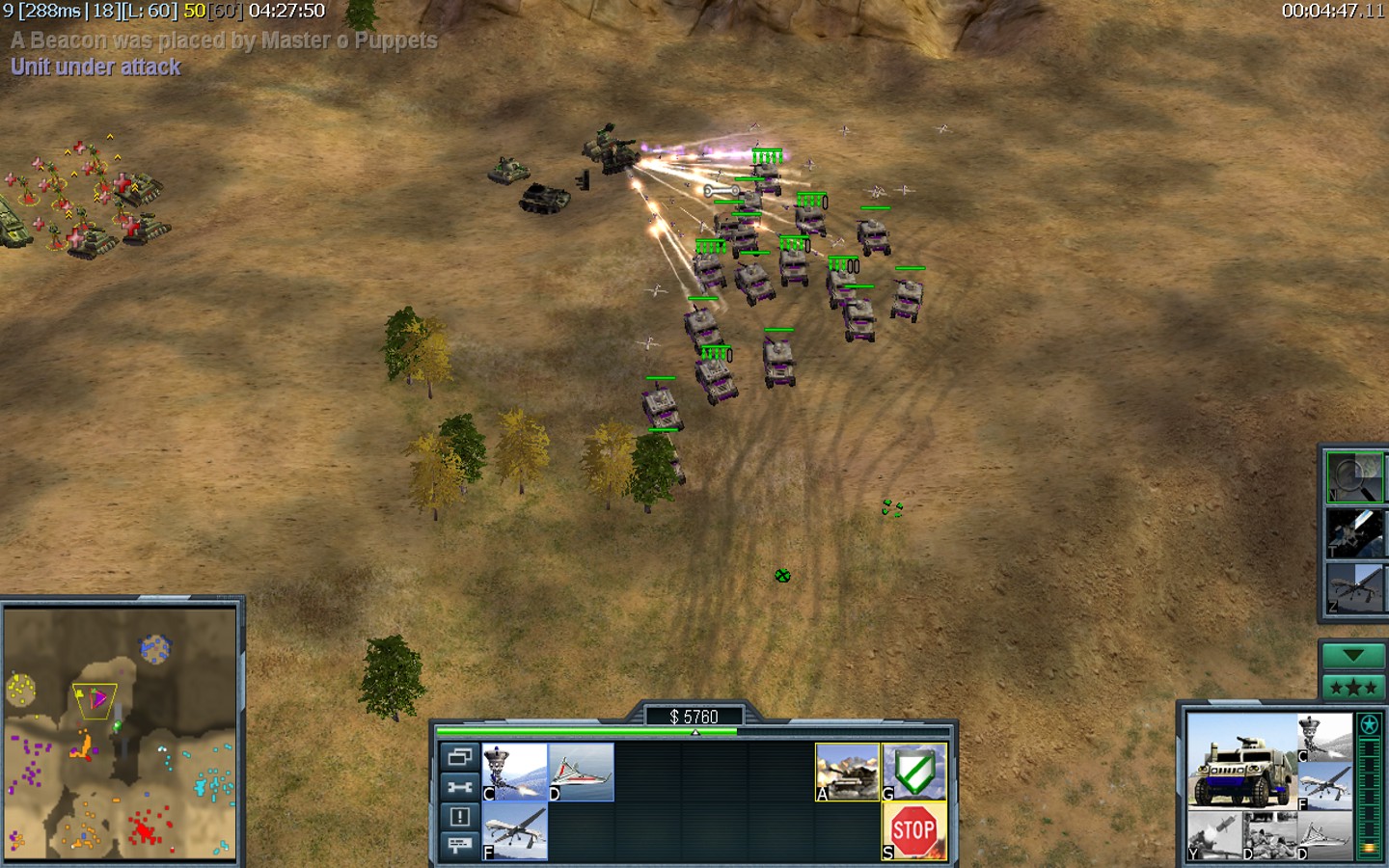 | NameMaster o Puppets | Side | Color | Team0 | Starting Position5 | Buildings Built19 | Buildings Lost1 | Buildings Destroyed23 | Units Built79 | Units Lost29 | Units Destroyed94 | Money Earned45570 | OutcomeWon |
