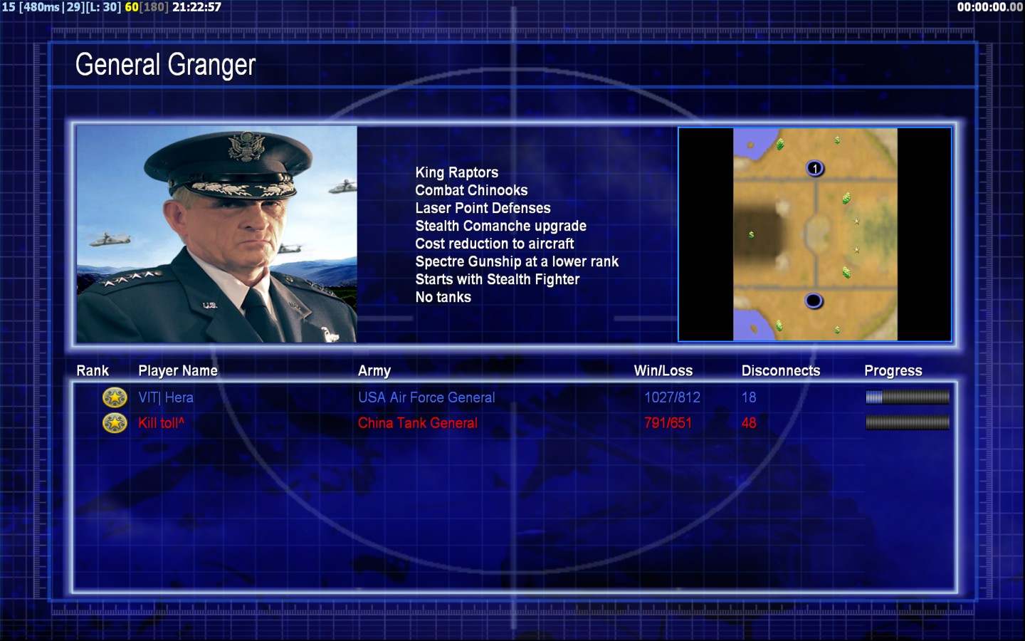 Color | TeamNone | Starting Position1 | Buildings Built8 | Buildings Lost0 | Buildings Destroyed7 | Units Built39 | Units Lost16 | Units Destroyed21 | Money Earned22650 | OutcomeWon |