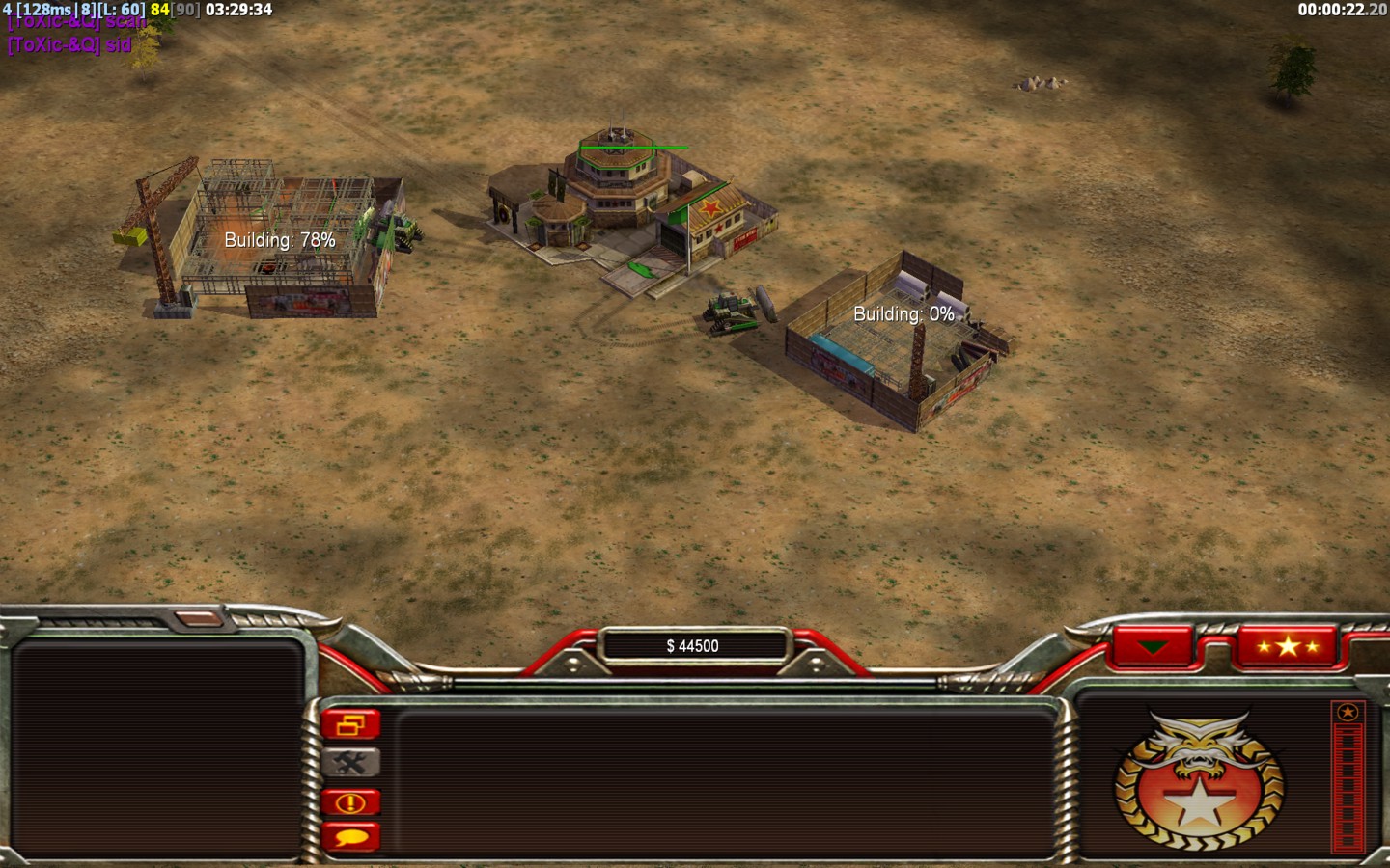 | NameToXic-&Q | Side | Color | Team1 | Starting Position3 | Buildings Built15 | Buildings Lost1 | Buildings Destroyed0 | Units Built36 | Units Lost6 | Units Destroyed11 | Money Earned11600 | OutcomeLost |