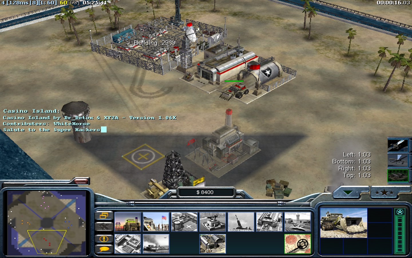 | NamePapa gamer | Side | Color | Team0 | Starting Position1 | Buildings Built5 | Buildings Lost0 | Buildings Destroyed0 | Units Built9 | Units Lost0 | Units Destroyed3 | Money Earned375 | OutcomeWon |
