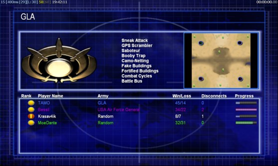 | NameKrasav4ik | Side | Color | Team1 | Starting Position3 | Buildings Built27 | Buildings Lost0 | Buildings Destroyed2 | Units Built120 | Units Lost0 | Units Destroyed60 | Money Earned75401 | OutcomeLost |