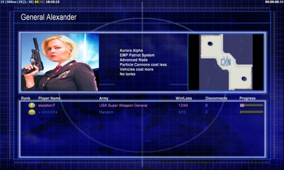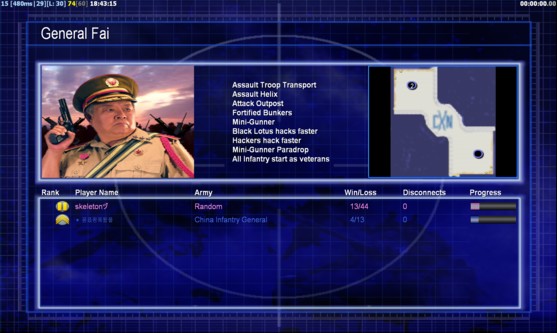 | Nameskeletonγ | Side | Color | TeamNone | Starting PositionNone | Buildings Built1 | Buildings Lost0 | Buildings Destroyed0 | Units Built2 | Units Lost0 | Units Destroyed0 | Money Earned0 | OutcomeLost |