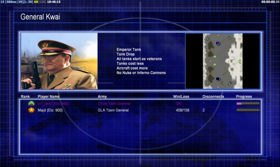 | Name | Side | Color | Team | Starting Position | Buildings Built | Buildings Lost | Buildings Destroyed | Units Built | Units Lost | Units Destroyed | Money Earned | Outcome |