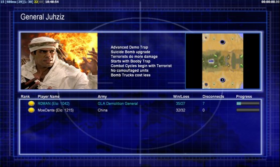 | Name | Side | Color | Team | Starting Position | Buildings Built | Buildings Lost | Buildings Destroyed | Units Built | Units Lost | Units Destroyed | Money Earned | Outcome |