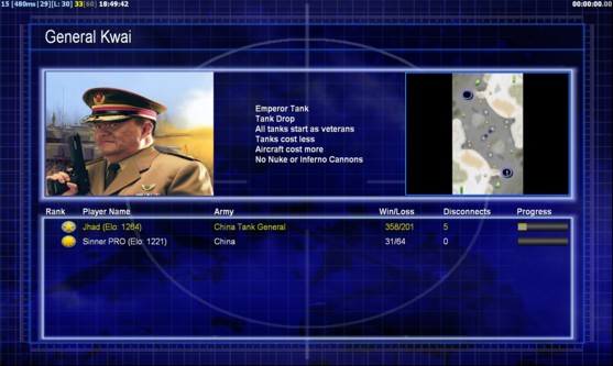 | Name | Side | Color | Team | Starting Position | Buildings Built | Buildings Lost | Buildings Destroyed | Units Built | Units Lost | Units Destroyed | Money Earned | Outcome |