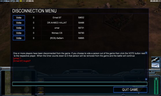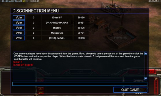 | Name{RDX}-SaBaH- | Side | Color | Team3 | Starting Position3 | Buildings Built0 | Buildings Lost0 | Buildings Destroyed0 | Units Built0 | Units Lost0 | Units Destroyed0 | Money Earned0 | OutcomeLost |